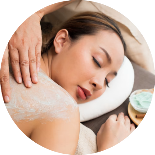 Pijat tubuh dengan scrub untuk kulit halus dan cerah.